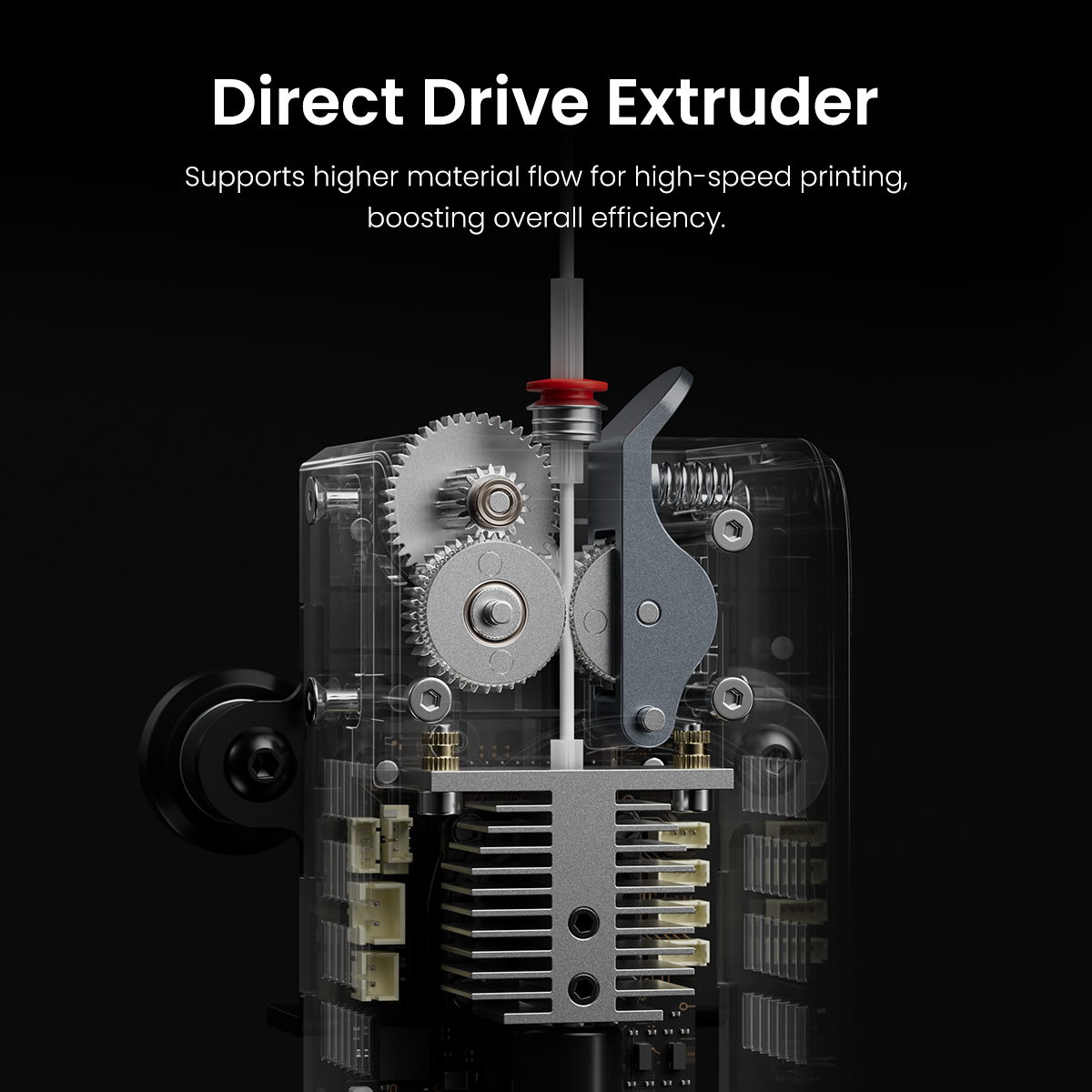 Upgraded high-flow direct drive extruder delivers more stable extrusion for flawless prints.