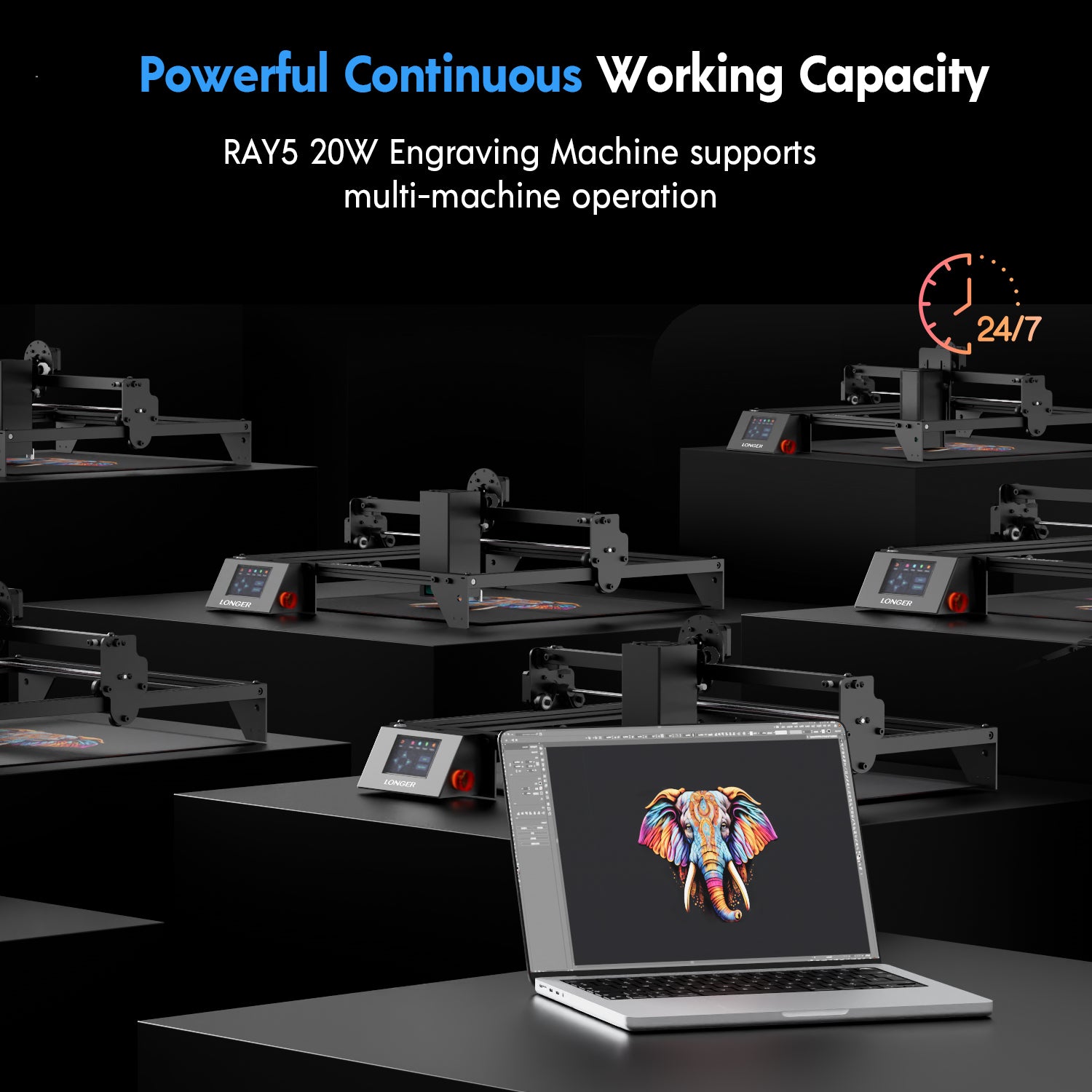 The RAY5 20W laser engraver let you breeze through even the most intricate engraving. Experience new level of efficiency with the exceptional power of the RAY5 20W