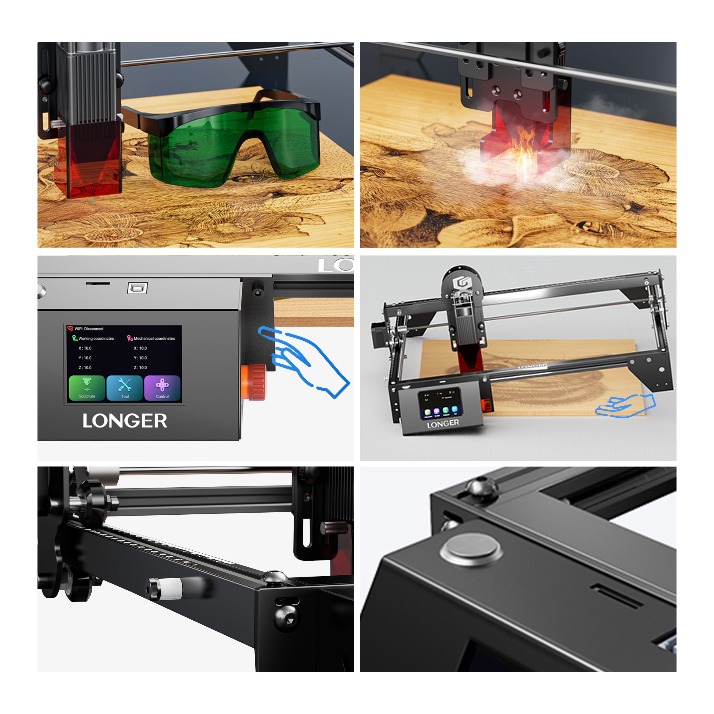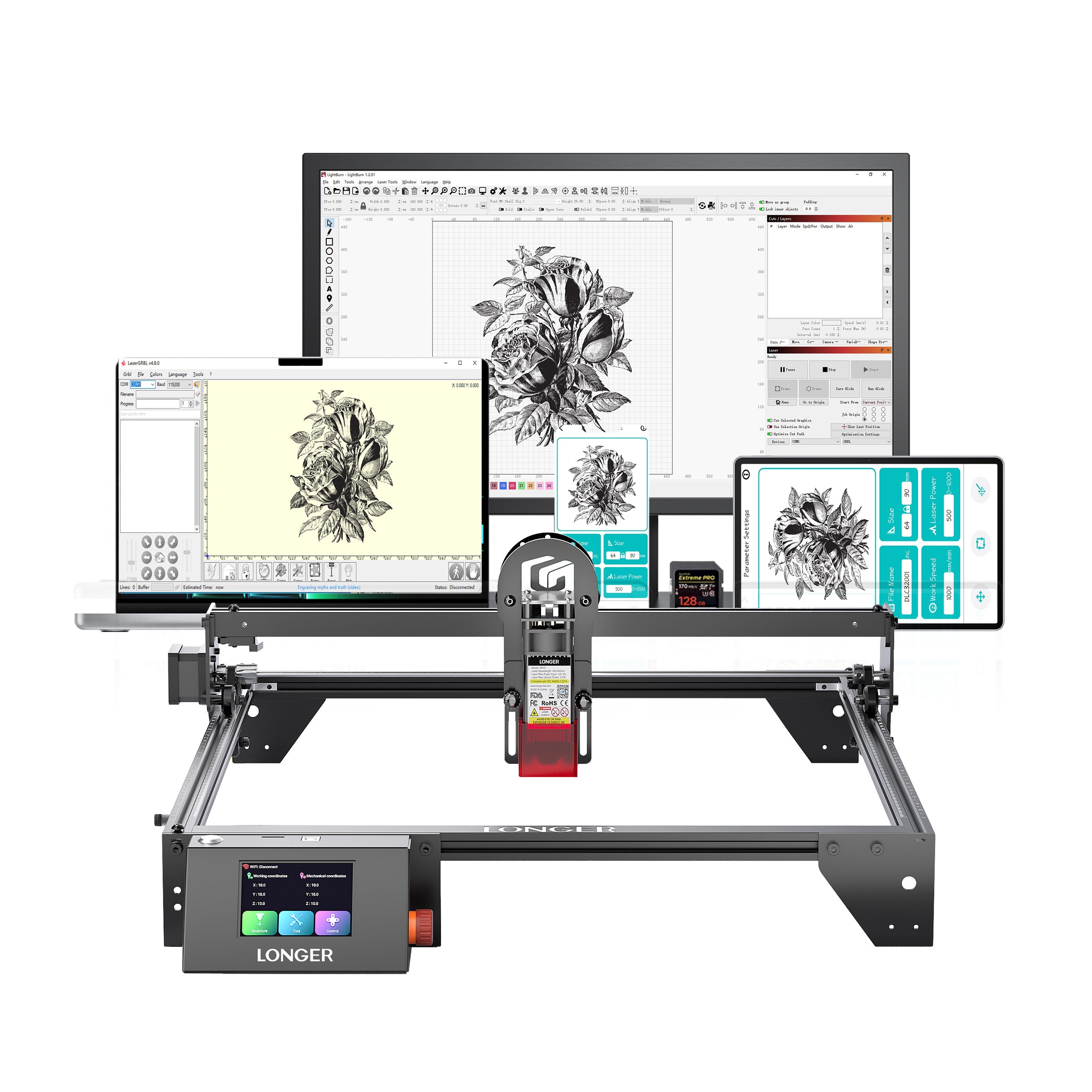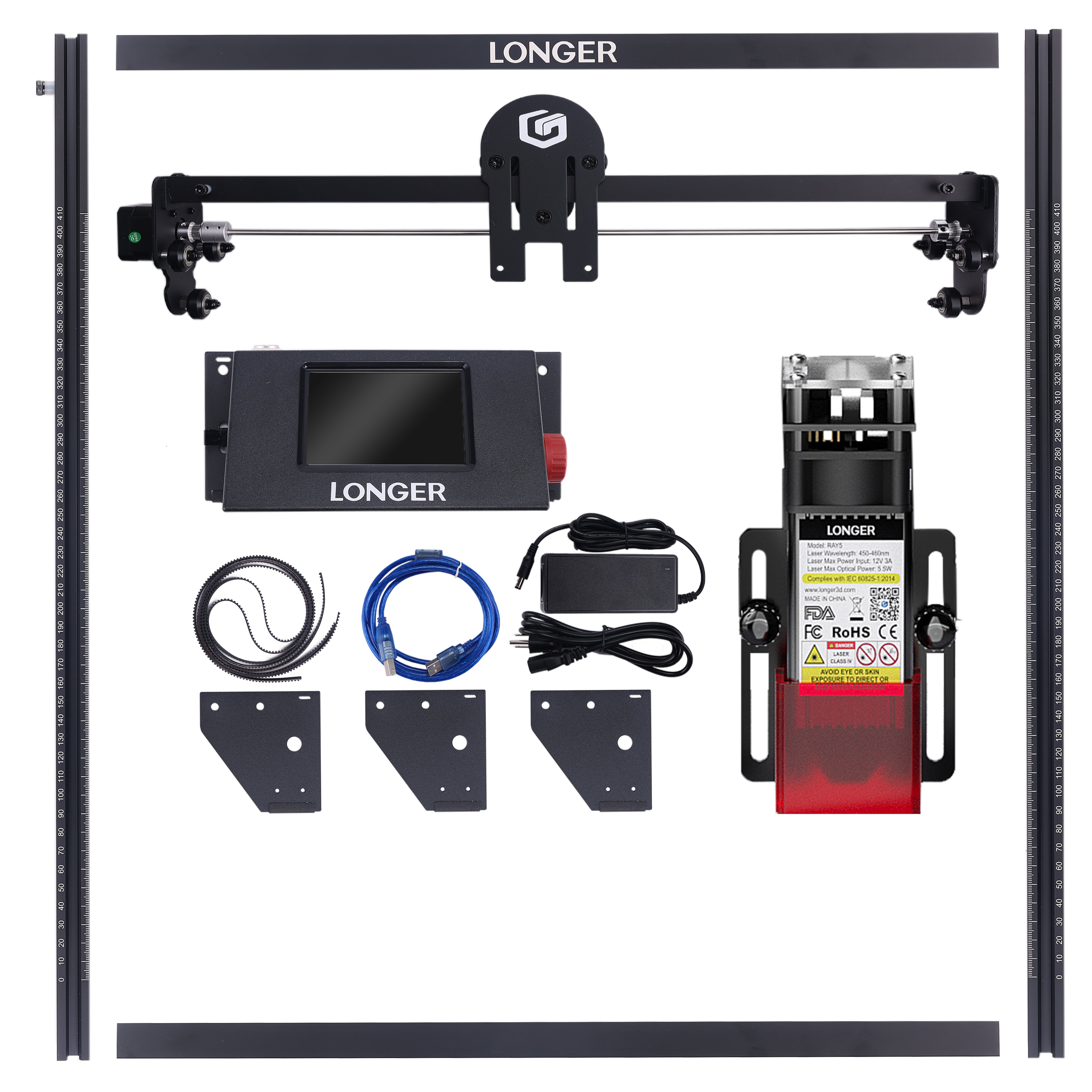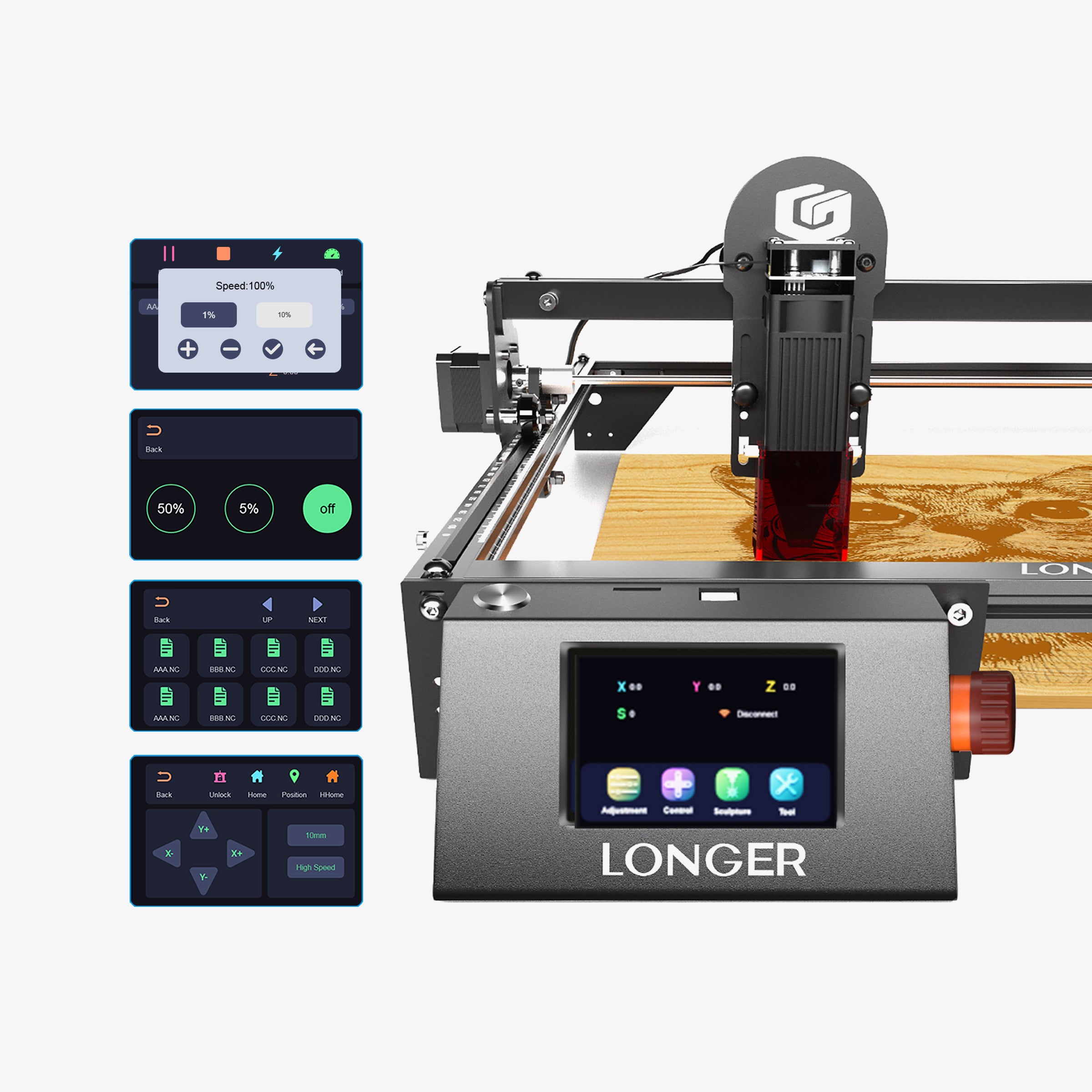 The RAY5 comes equipped with a 3.5-inch touch screen, offering seamless navigation and control. It supports three connection methods: USB, TF card, and WIFI offline mode. Additionally, the mobile app "MKSLaser," available for both Android and iOS devices, provides users with the convenience of controlling the Longer Ray5 directly from their smartphones. Beyond mere control, this app enables users to edit images and adjust engraving parameters on the go, ensuring flexibility and efficiency in their engraving tasks