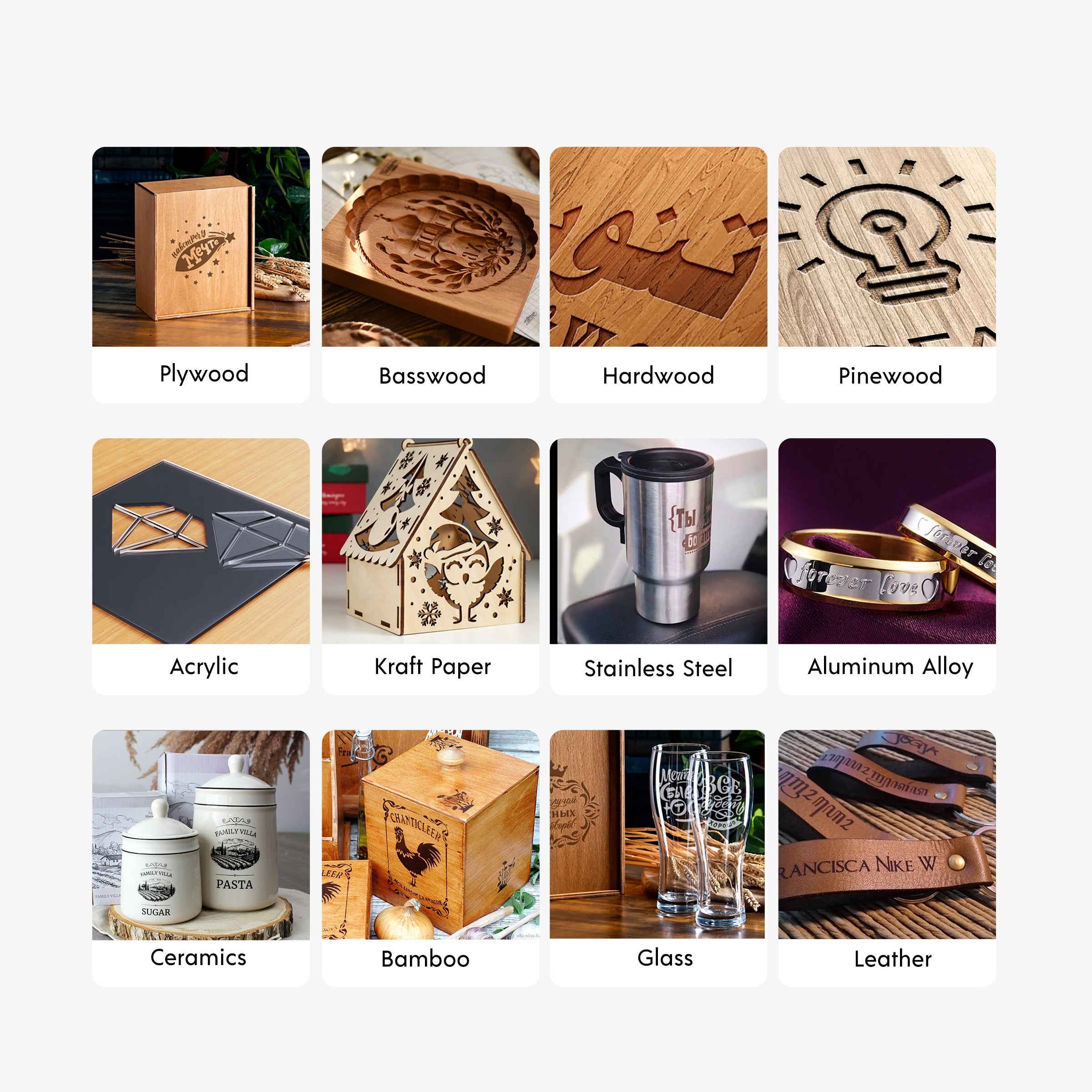 The Longer LaserB1 is capable of engraving a wide range of materials including plywood, basswood, hardwood, pinewood, acrylic, kraft paper, stainless steel, aluminum alloy, ceramics, and more. Additionally, the Longer LaserB1 excels in cutting materials such as basswood, acrylic, bamboo, kraft paper, and othersNo, it cannot. It requires manual focusing, which is a simple process