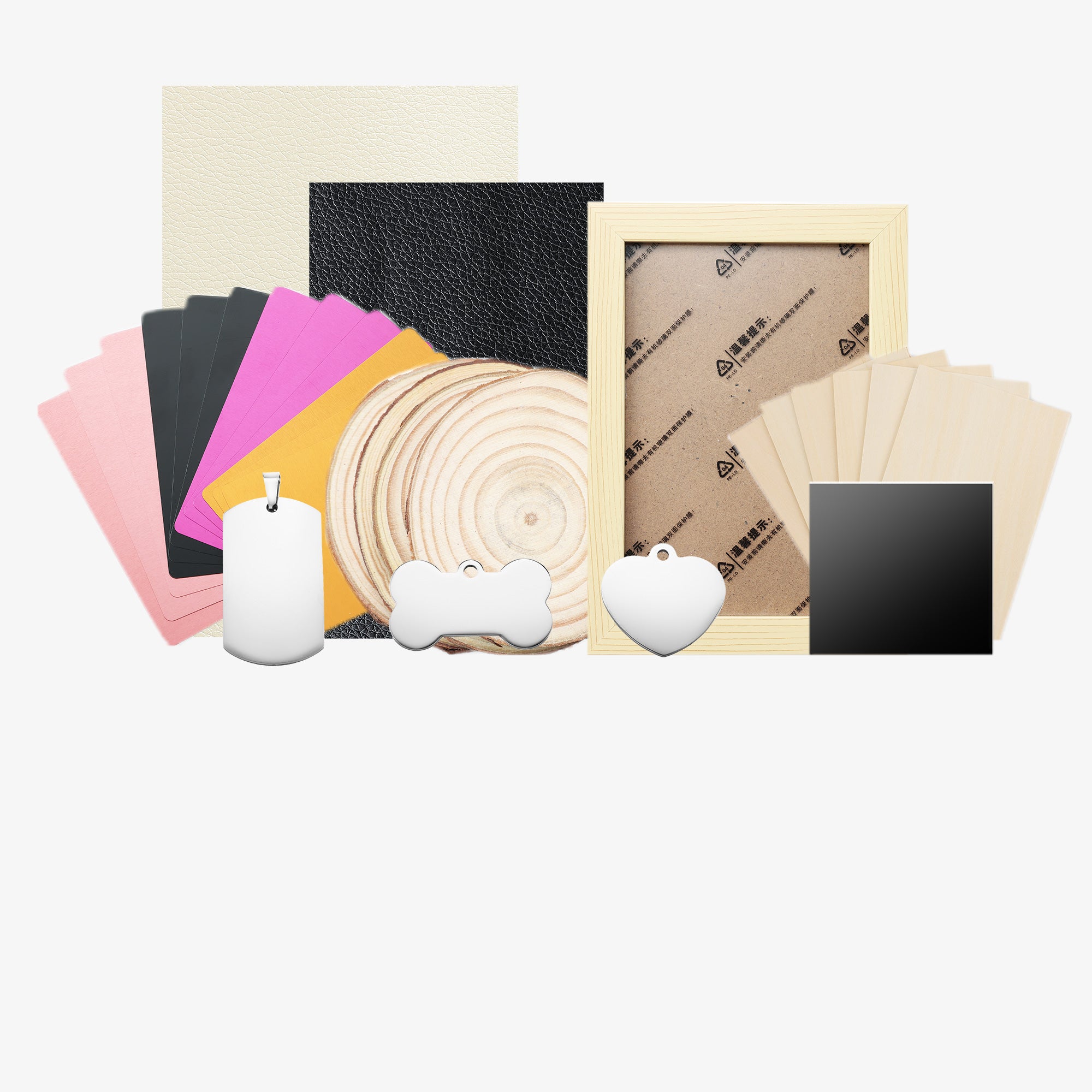 Supported engraving materials: all wood, paper, plastic, leather, PCB board, aluminum oxide, non-reflective coating and painted metal, etc